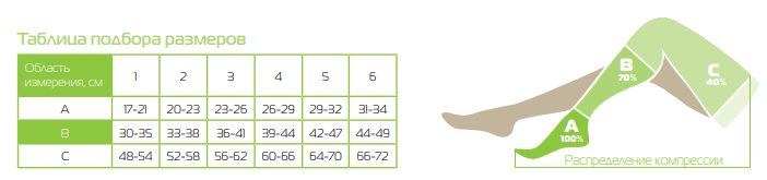 Обращаем Ваше внимание, что на стопе чулка указаны размер и компрессия (первая цифра обозначает степень компрессии, вторая – размер изделия).
