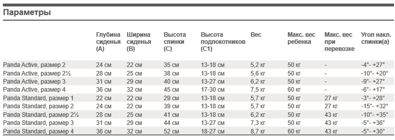 Panda Futura Актив (Active) выпускается 4-х размеров и подходит для детей от 1 года.
