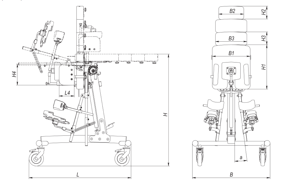 Изделие имеет возможность измерения угла вертикализации от +90° до -15°. Совместно с функцией измерения угла отведения бедра опора обеспечивает безопасную вертикализацию.