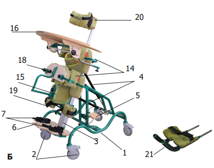 Опора функциональная для стояния для детей-инвалидов, представляет собой многофункциональное устройство - вертикализатор на металлической раме, позволяющий проводить вертикализацию ребенка в положении «лежа на спине» - с поддержкой сзади (использование в качестве заднеопорного вертикализатора), переводить из горизонтального в вертикальное положение с закреплением в любом промежуточном положении,  используя пневмопривод, обеспечивая поддержку правильной позы и удерживание ребенка в необходимом положении по углу наклона.